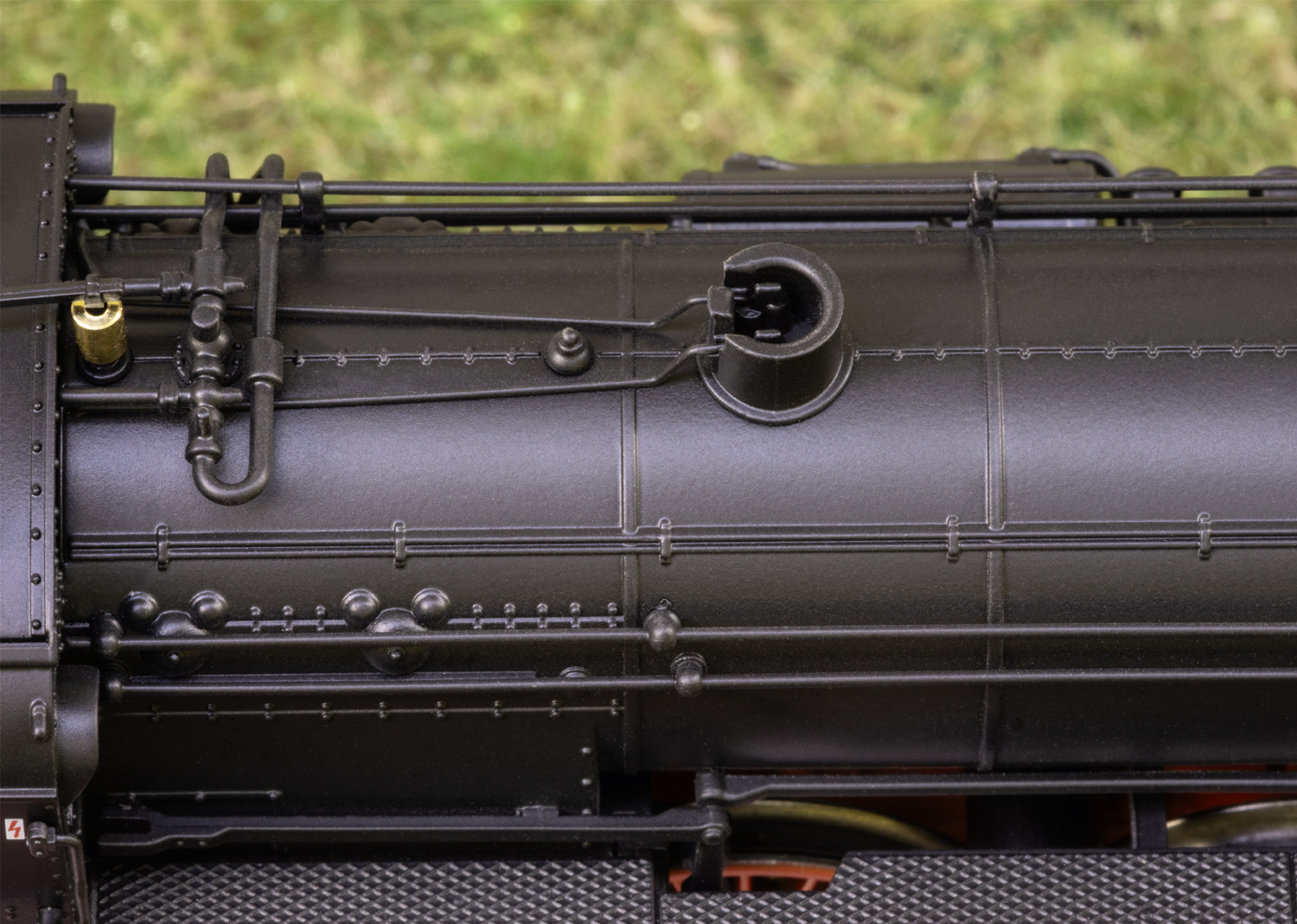 Modell: Mit Digital-Decoder mfx+ und umfangreichen Geräuschfunktionen. Geregelter Hochleistungsantrieb mit Schwungmasse im Kessel. 4 Achsen angetrieben. Haftreifen. Lokomotive und Tender weitgehend aus Metall. Serienmäßig eingebauter Raucheinsatz, mit geschwindigkeitsabhängigem, dynamischem Rauchausstoß. Fahrtrichtungsabhängig wechselndes Zweilicht-Spitzensignal konventionell in Betrieb, digital schaltbar. Führerstandbeleuchtung und Feuerbüchsenflackern jeweils separat digital schaltbar. Beleuchtung mit wartungsfreien warmweißen und roten Leuchtdioden (LED). Mit Pufferspeicher. Schwenkbare Führerstandtüren und Imitation der Vorhänge zwischen Führerstand und Tender. Kurzkupplung mit Kinematik zwischen Lok und Tender. Am Tender kinematikgeführte Kurzkupplung mit NEM-Schacht. Pufferhöhe an Lok und Tender nach NEM. Befahrbarer Mindestradius R2 437,5 mm. Kolbenstangenschutzrohre und Bremsschläuche liegen bei. Länge über Puffer 26,0 cm.