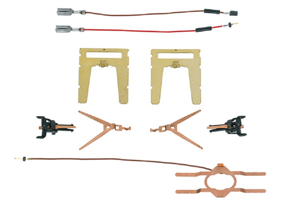 Trennbare Kurzkupplung mit einpoliger elektrischer Verbindung für beleuchtete Schnellzugwagen. Passend für die vorbereiteten Wagen mit 26,4 cm, 27 cm und 28,2 cm Länge beim Einbau der Innenbeleuchtung 73400. Ein Wagen im Zugverband benötigt einen Schleifer 73404, 73405 oder 73406.Inhalt: 2 Kurzkupplungsköpfe für Norm-Kupplungsaufnahmen mit Kontakten, 2 Kontaktsätze für die Kupplungsdeichseln, 1 Massefeder zum Drehgestell, 2 Anschlusskabel undEinbauanleitung.Betriebssichere Verbindung mit rastenden Kontakten. Ein- und Auskuppeln auf der Anlage manuell möglich, kuppeln auch mit regulären Kurzkupplungen ohne elektrischen Kontakt.