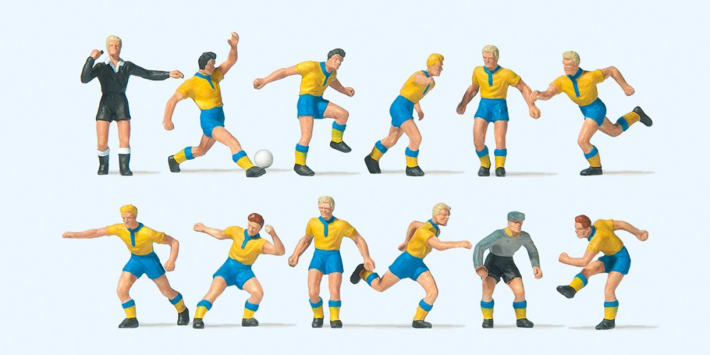 Fussballmanschaft Gelbe Trikots, blaue Hosen